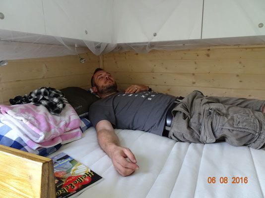 Der Lasti ist noch nicht wirklich schlau eingerichtet. Das Mückennetz muss noch etwas anders montiert werden. Wir wollen doch mehr an die Schränke als gedacht. Hier immer alles abhängen und wieder aufhängen ist doch mühsamer als gedacht. Des Weiteren werden wir nun doch etwas Wasser in einen der Tanks einfüllen. Immer auswärts essen etc. ist doch viel zu teuer hier. Das heisst morgen das Moped in Betrieb nehmen und Essen einkaufen und Kühlschrank füllen. Wasser tanken, und uns noch etwas besser einrichten. Kinderkrankheiten der Navigationshardware reparieren, bzw. korrigieren. Und nicht zuletzt mal die Ferien etwas geniessen.